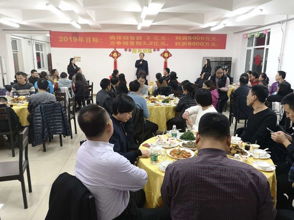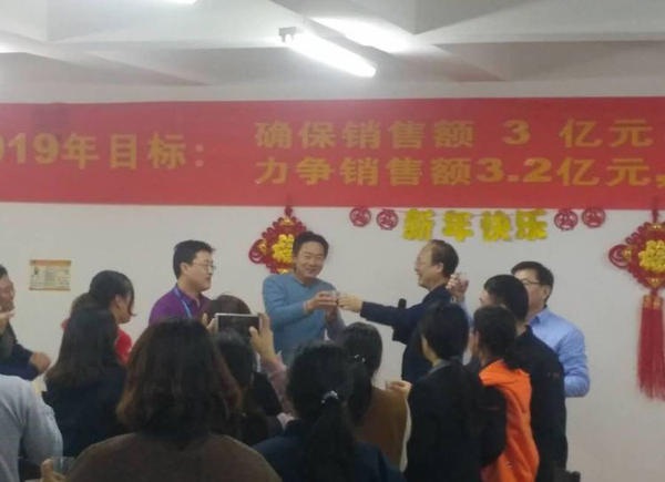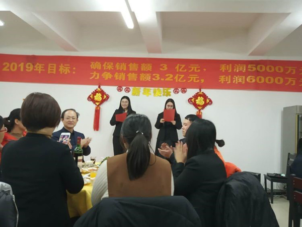 活動第一項:Boss致辭! 董事長首先給大家拜年鞠躬,感謝大家一年來的付出;仡2018年的艱難與艱辛,社會經(jīng)濟形勢疲軟,公司雖然緊張但已經(jīng)是同地區(qū)過的最好的大公司,感謝大家這一年對公司的信任與支持,同時也肯定了2018年是公司業(yè)績最優(yōu),技術突破最多,成績最好的一年。 展望2019年,國家政策重大利好,公司度過了最艱難的時期,資本支持足,公司將進入高速發(fā)展階段。要求利潤由兩千多萬要邁向五千多萬,并挑戰(zhàn)六千萬目標?磥硇』锇閭円獢]起袖子加油干啦。! 董事長強調公司由新三板改創(chuàng)業(yè)板或科創(chuàng)板,公司產(chǎn)品屬于高精尖,國家重點支持的產(chǎn)業(yè),是幾代人干不完的事業(yè)。大家要對公司有信心,而且爆料董事長將給予一部分老員工與干部低價購買股份的機會,公司是混合所有制公司,希望大家共同都享受公司的利潤分紅。小伙伴們,賺錢的機會要來了。不知道誰會有這樣的榮譽呢,總之大家好好干,衷心的把事業(yè)做好總會有回報的。 接下來董事長重點強調了對所有參加的員工提出了工作要求,大家要注意了,接下來各部門開會可要好好分析工作如何開展,如何達到董事長的要求: 1 行政管理將是2019年重要的工作,彌補公司行政管理的短板,各部門要共同加強職能部門管理意識,建立流程化思維,服務好生產(chǎn)與銷售。 2 要積極開展批評與自我批評工作,用好國家領導人都在用的管理工具。使全員工作的同時,有批評有獎勵有評價有意義。吾日三省吾身! 3 提出電子商務部要加強設計思維,多開發(fā)高端日用品,不走量的路線,讓我們用的茶杯酒杯都是我們自己的中硼產(chǎn)品,把中硼這一優(yōu)勢材料推廣出去。 考核部提醒大家,接下來的工作大家要好好思考了,各部門會議要強調2019年工作該如何開展了。