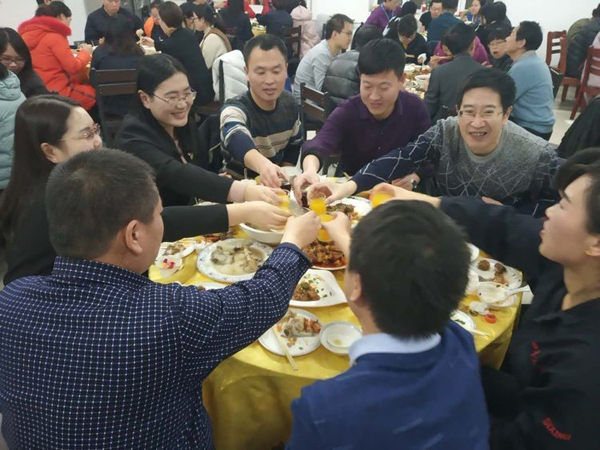 同事,職工朋友們相互敬酒,場面堪稱宏偉壯觀啊