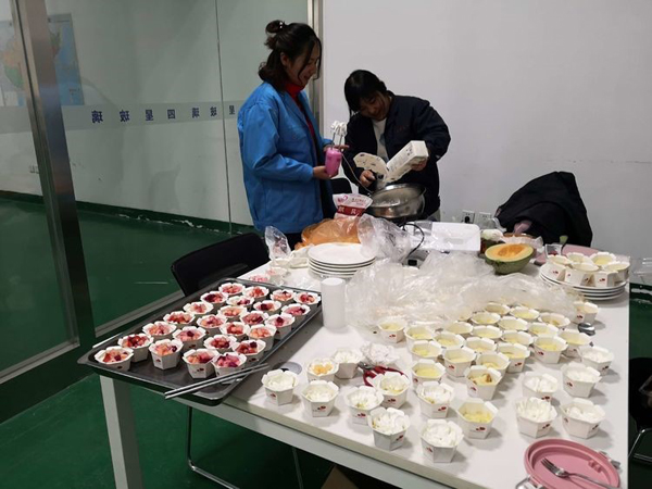 本次活動最大的高潮,董事長提酒一杯敬公司的恩人王建民主任,救公司于危難之際,是雪中送炭的好人。 最后公布本次菜品評選的最終結果: 最好看的 大盤雞(劉哲) 紅燒鯽魚(劉巖) 最好看的 可樂雞翅(芮培震) 家長茄子(李蒙蒙) 最香的 羊蝎子(路春雨) 水煮肉片(許雷雷) 油燜大蝦(王璇) 最有創(chuàng)意的 蛋糕甜蜜蜜(王芳) 大豐收(蘇彥) 最暖胃的 南瓜湯(孟明) 菠菜丸子湯(李洪娜) 我們決定以后定期安排職工高手幫廚,改善大家的伙食咯!讓大家吃飽吃好,大家伙才能好好工作。
