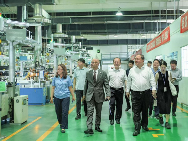 深入生產(chǎn)一線,見證四星魅力 隨后,法赫米先生一行深入公司生產(chǎn)現(xiàn)場,實地參觀了預灌封注射器生產(chǎn)線、西林瓶生產(chǎn)線及玻管生產(chǎn)線。整潔有序的生產(chǎn)環(huán)境、高度智能化的生產(chǎn)設備,無不彰顯著四星玻璃的現(xiàn)代化生產(chǎn)能力和科技實力。法赫米先生對四星玻璃的智能化水平給予高度評價,并對產(chǎn)品質量表示了充分信心。