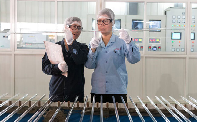 我們使用的是冷頂式全電熔維洛法生產(chǎn)5.0中性硼硅玻璃管,獲得了國家發(fā)明專利(專利號:ZL200710187477.5,專利證書號:745115),產(chǎn)品被評為2014年國家級重點(diǎn)新產(chǎn)品,并成為國家“十二五規(guī)劃”戰(zhàn)略性新興產(chǎn)業(yè)的重點(diǎn)扶持項(xiàng)目。