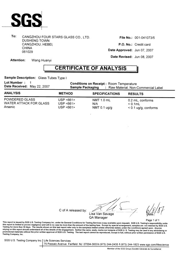 ISO國際標(biāo)準(zhǔn),玻璃管顆粒法耐水I級為耗酸量小于1ML,國際同行業(yè)的數(shù)值是0.35ML,而我們是0.2ML(數(shù)值越小質(zhì)量越好),此項(xiàng)技術(shù)已經(jīng)獲得了美國權(quán)威檢測機(jī)構(gòu)SGS的檢測證書,此產(chǎn)品已經(jīng)達(dá)到國際先進(jìn)水平。