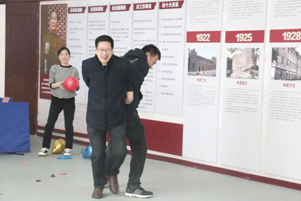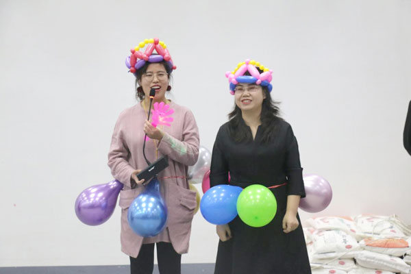 還有我們充滿趣味性的雙人背靠背夾氣球互動(dòng)游戲,兩位美女主持人熱情洋溢,朝氣蓬勃,得到了員工一致性好評。
